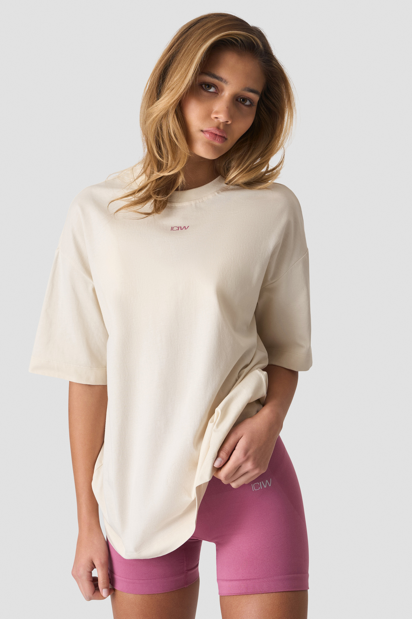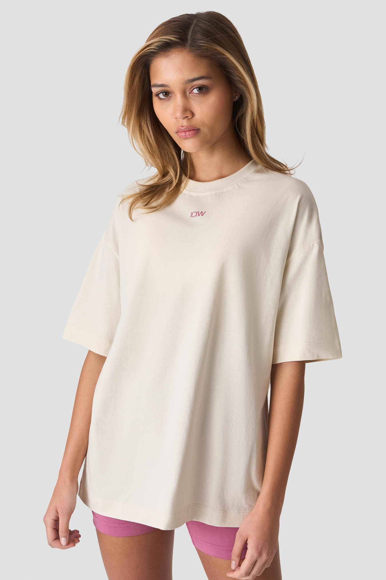 Everyday Oversized T-skjorte gir uanstrengt stil i hverdagsgarderoben din. Med en avslappet, boxy passform og ribbet rund hals har den en myk jerseykvalitet og et lett fall for komfort hele dagen. Et retroinspirert ICIW-trykk gir et markant uttrykk, og den standarde lengden gjør den enkel å kombinere med leggings, shorts eller jeans. Perfekt til alt fra trening til avslappede helger.