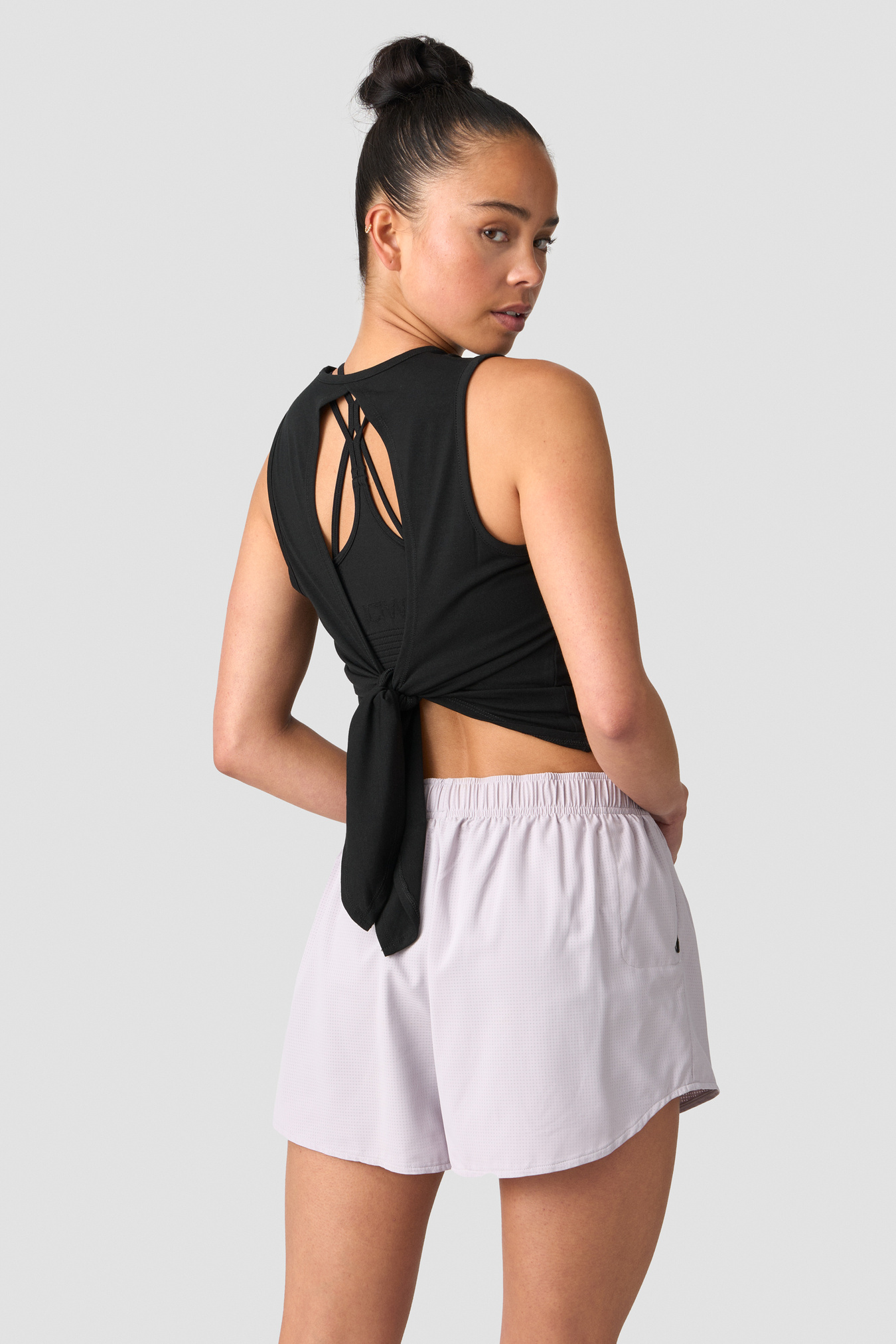 Treningstopp med åpen rygg og knytting. Empowering-kolleksjonen er designet for å fremheve styrke og femininitet. Empower yourself and make it happen! Åpen rygg med knytting, høy hals, diskret logo på brystet, effektiv svettetransport og standard lengde. Finnes i flere farger. 57% polyester, 31% rayon, 12% elastan.