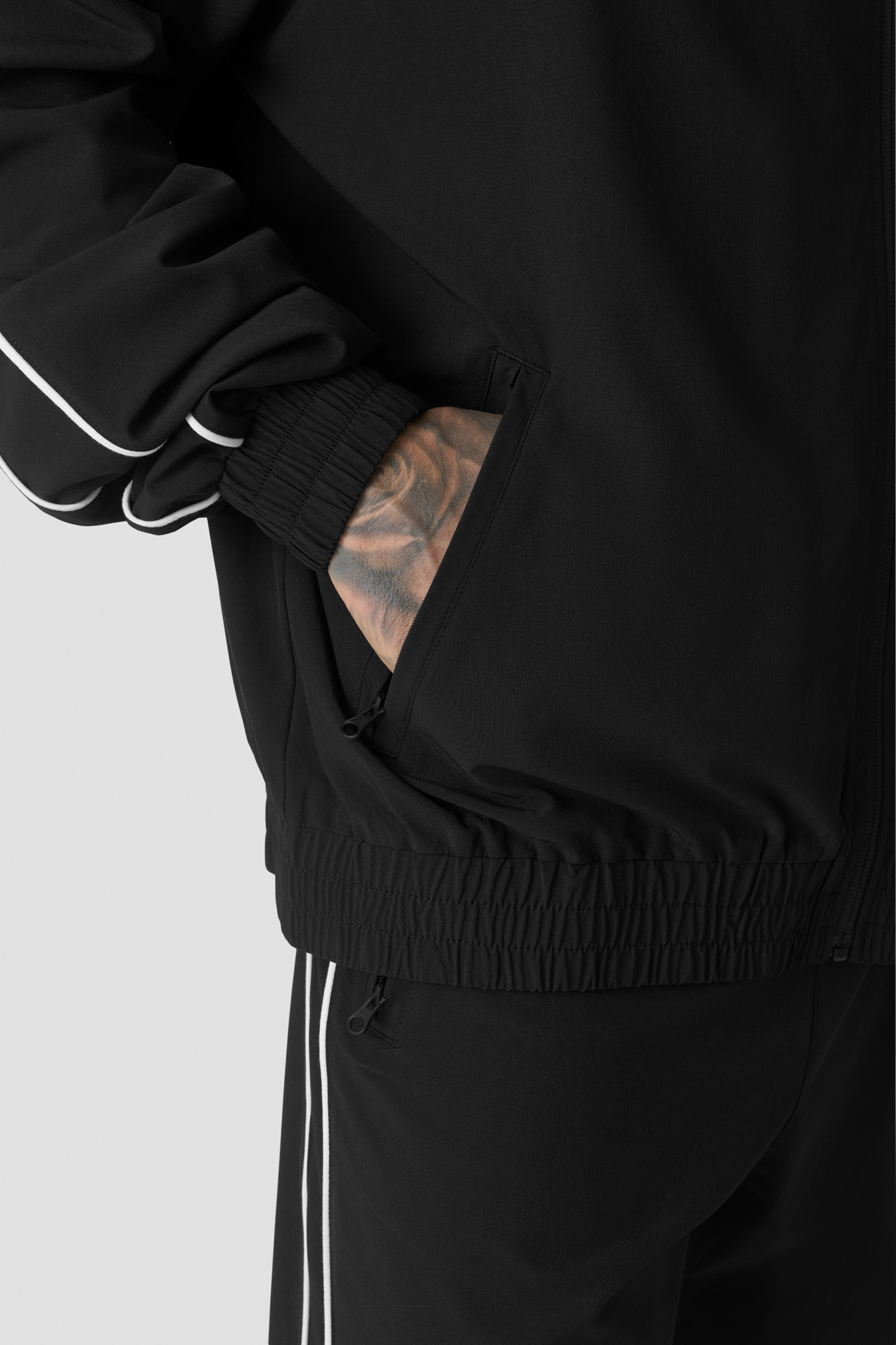 Del av Contrast-kolleksjonen. Trackjakke i myk, glansfull stretchjersey med en premium, glatt håndfølelse som kjennes behagelig mot huden. Fireveis stretch gir full bevegelsesfrihet, mens den pustende konstruksjonen med lett meshfôr hjelper til med å regulere temperaturen når du er i aktivitet. Normal passform og rene kontrastdetaljer gir et moderne, atletisk uttrykk. Full glidelås foran og ICIW-logo i heat transfer for en sleek finish. 90 % polyester, 10 % elastan.