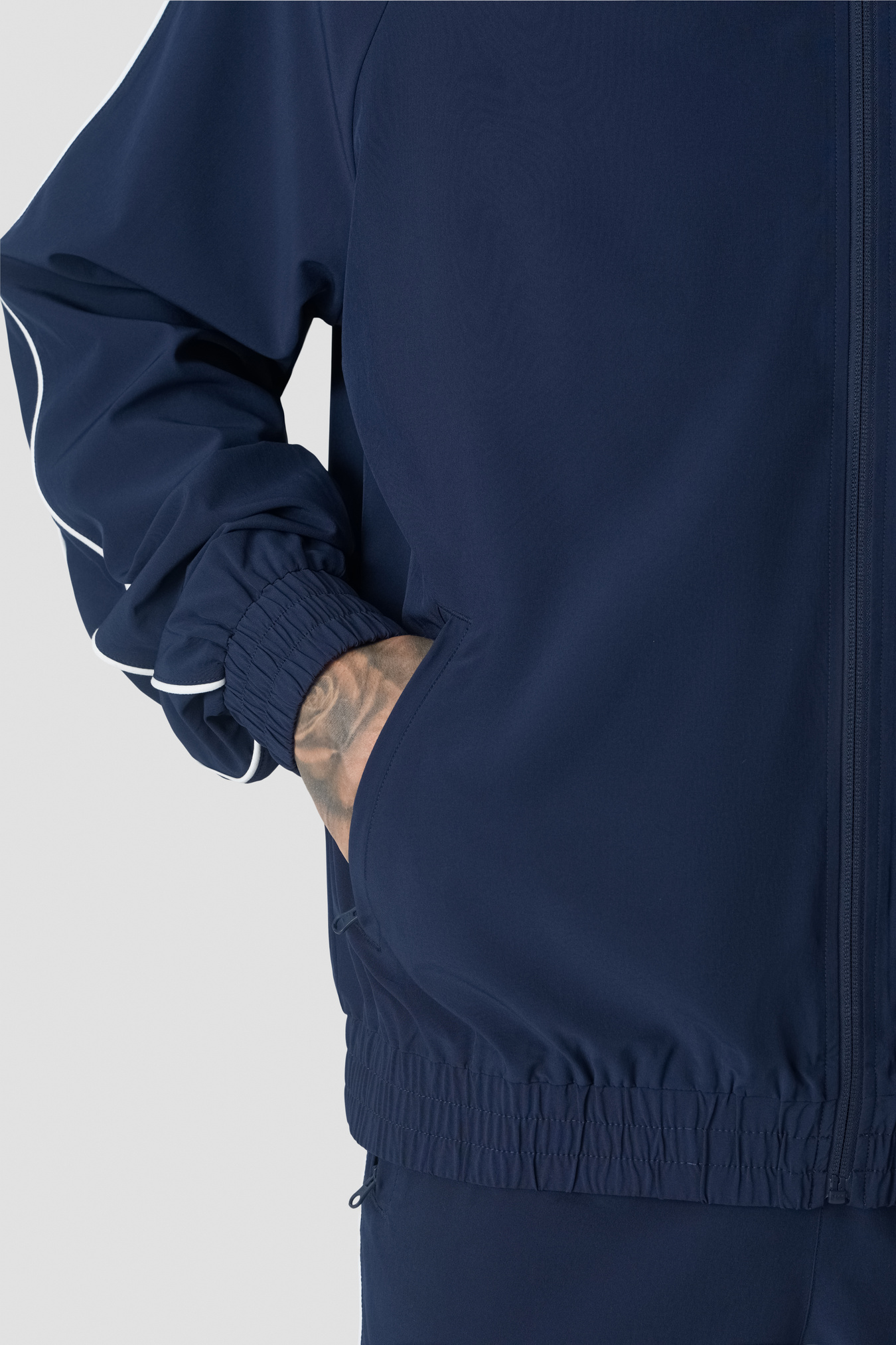 Del av Contrast-kolleksjonen. Trackjakke i myk, glansfull stretchjersey med en premium, glatt håndfølelse som kjennes behagelig mot huden. Fireveis stretch gir full bevegelsesfrihet, mens den pustende konstruksjonen med lett meshfôr hjelper til med å regulere temperaturen når du er i aktivitet. Normal passform og rene kontrastdetaljer gir et moderne, atletisk uttrykk. Full glidelås foran og ICIW-logo i heat transfer for en sleek finish. 90 % polyester, 10 % elastan.