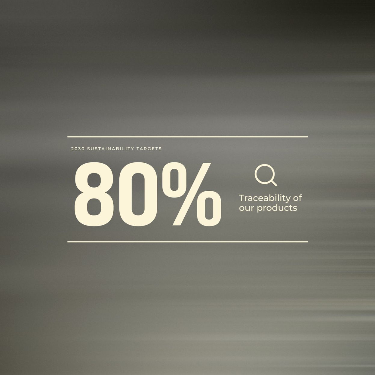 80% spårbarhet av våra produkter till 2030 för att säkerställa transparens, ansvarsfulla arbetsvillkor och minimera miljöpåverkan inom hela produktionsledet. Vi håller i dagsläget på att mappa ut vår produktionskedja för att kunna räkna ut spårbarheten på våra produkter.